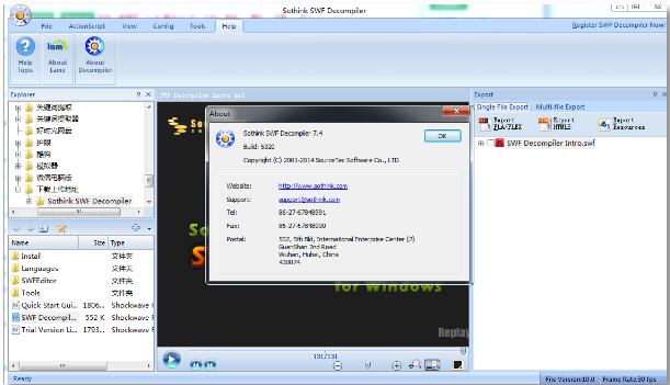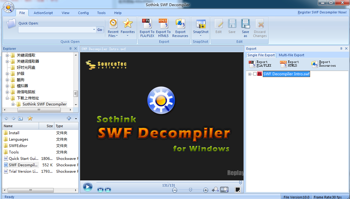 SWF Decompiler提供office 2007风格的多语言界面,系统语言可以自动识别。