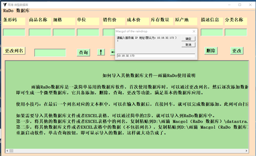 1、本系统采用TCP/ip协议建立了查询MAC地址的客户端软件,而服务端软件则具备了生成,导入,导出,发送消息通知,模糊查询的各项功能,客户端只用来查询与接收服务端的消息通知!