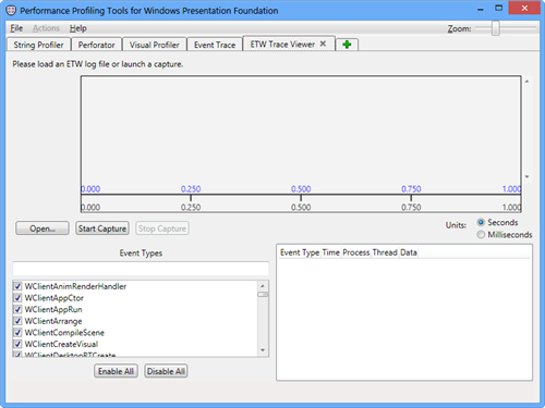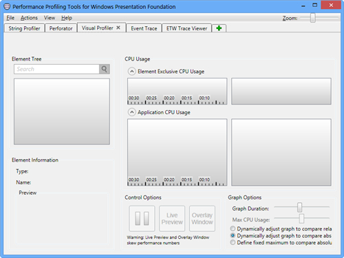 默认情况下,WPF性能套件包括以下性能分析工具。