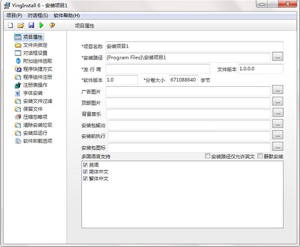 2.创建一个新的安装项目文件,双击该文件自动启动YingInstall。
