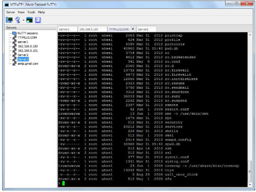 清除标签用户界面。 服务器分组在侧边栏。 任务栏快速访问基本的程序任务。 任何PuTTY选项卡都可以分离并转换成普通的PuTTY窗口。
