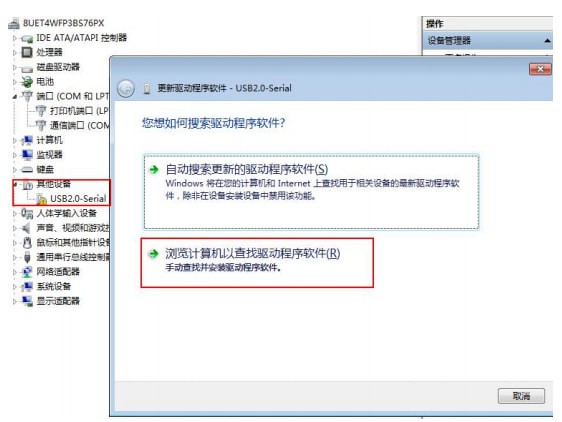 点击该端口右键,点击“更新驱动程序”选择正确的驱动文件夹