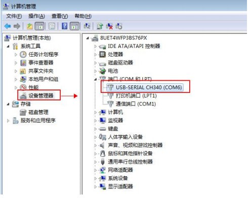 安装成功后,该端口前面的黄色感叹号将消失,并且会在“设备管理器”的“端口”处显示该端口及端口号。
