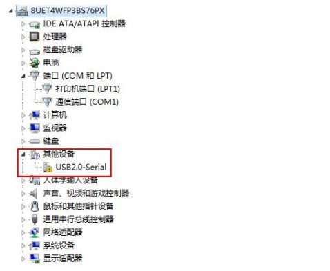 若驱动未安装成功,电脑识别不了该端口设备,将会给该端口设备标记一个黄色的感叹号。