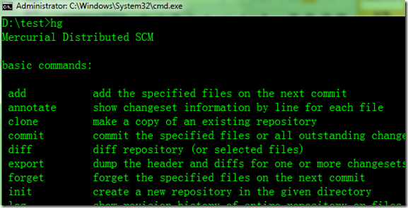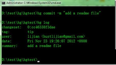 1、测试hg的安装效果 cmd中输入:hg