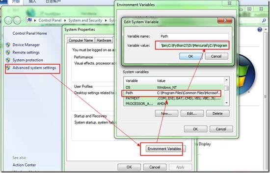 如果不能显示,则修改我的电脑->属性->高级->环境变量->系统变量中的PATH为: (为了在命令行模式下运行Python命令,需要将python.exe所在的目录附加到PATH这个环境变量中。) PATH=PATH;<你的mercurial目录>;如: