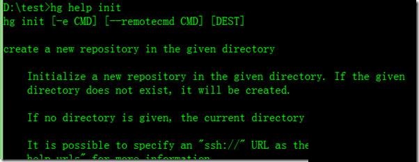 2、获取帮助:hg help :如init命令的帮助信息