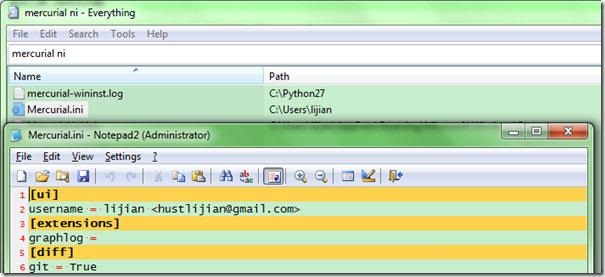 (Windows) "%HOME%Mercurial.ini"下面是我的配置文件: