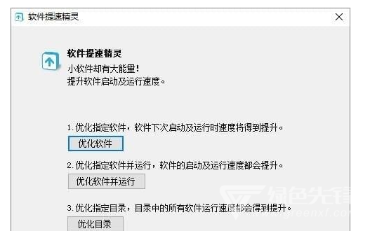 软件提速精灵官方版是款非常专业的软件运行优化软件;软件提速精灵官方版优化的速度相当的快,并且对优化需要的时间显示;如果您感到您的电脑上有的应用程序启动速度过慢,可以将该软件下载使用;一键的即可完成对软件的启动优化,让运行的速度得到加强。