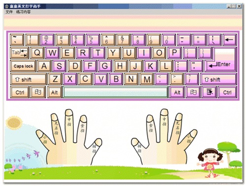 1、手指分工练习。按照手指分工的范围进行练习。包括了1基本键、2食指、3中指、4无名指、5小指、6列。