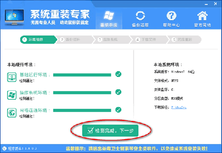 系统重装专家官方版集成国内最全驱动库,精准识别硬件设备;智能检测、自动安装、设备即时生效;