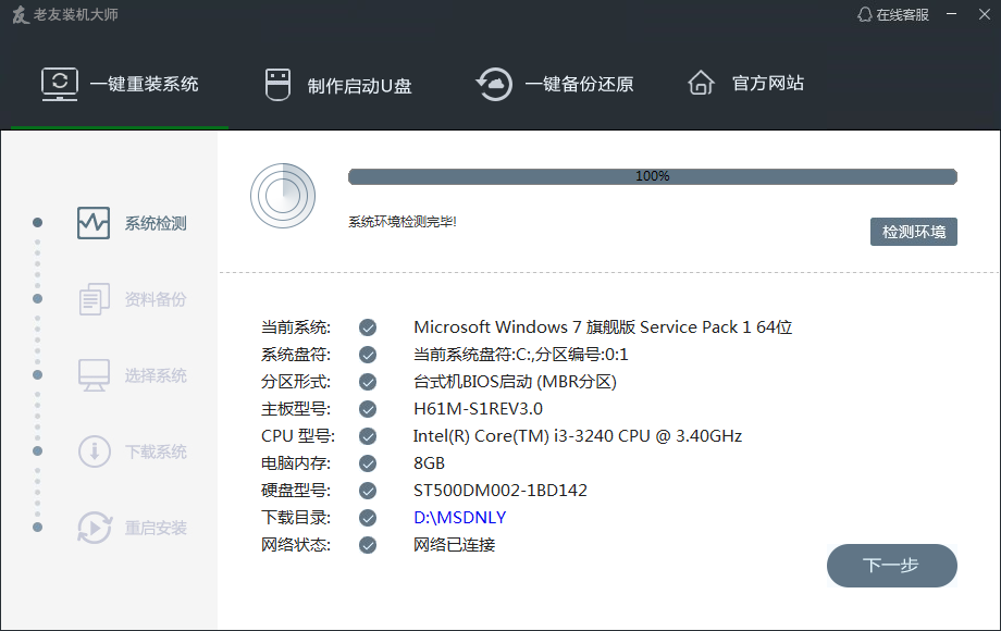 如果你的电脑启动不了或原系统损坏请通过U盘或光驱等来启动电脑重装系统,老友装机大师提供U盘启动进PE系统来安装!