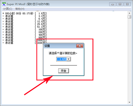4、选择你要计算的位数,(一般采用104万位)点击开始就可以了。