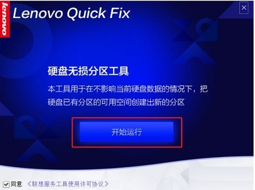 双击运行“硬盘无损分 区工具.EXE”,可能出现的用户账户控制提示,请选择是,如图: