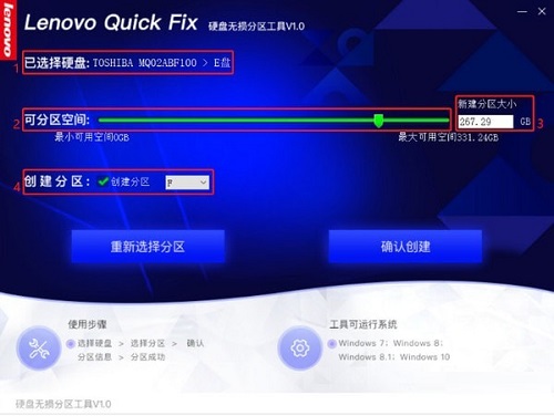 小3位置是新创建分区的容量,您也可以手动输入分区大小;