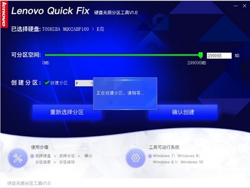 点击确认后软件将开始创建分区,请耐心等待,如图: