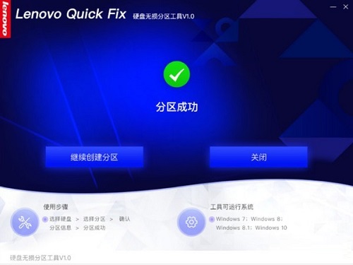 分区成功将出现提示,您可以选择关闭,也可以继续创建分区,如图: