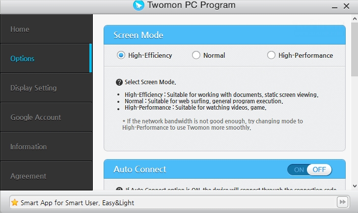 3运行 Twomon PC Program 软件,提供了三种显示模式,分别是 high-efficiency(效率模式) / Normal(正常模式) / high-Performance(性能模式),不同的显示模式清晰度会不一样。