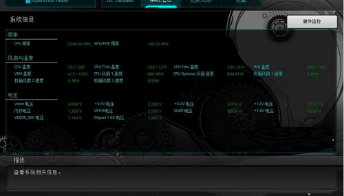 3、系统信息选项显示当前CPU的频率、温度、电压以及风扇转速
