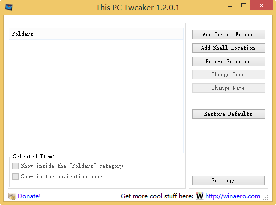 This PC Tweaker最新版是一款非常专业的电脑工具,其软件的目的是用来自定义系统文件夹的。且体积十分小巧实用。This PC Tweaker最新版可以帮助用户为电脑添加或删除自定义文件,包括“上帝模式”等快捷方式,为文件管理带来更多可能性。