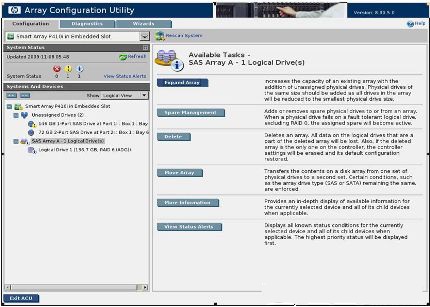 a.单击开始,然后选择程序>HP System Tools>HP Array Configuration Utility>Setup HP Array Configuration Utility。