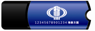 海泰方圆USBKEY外观、序号标识如下方图示,用户使用前请确认所持USBKEY外观为蓝色、序号以数字12开头。