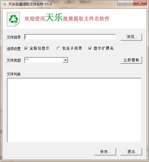 天乐批量提取文件名称官方版是一款美观大方、强劲实用的文件名提取软件,天乐批量提取文件名称最新版可以将指定目录下的文件名称批量提取出来,可以设定全路径,子目录,扩展名,隐藏文件名等选项。支持嵌套的子目录,以及文件名全路径和文件扩展名显示,绿色无需安装,下载打开即可使用。