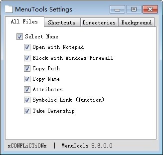MenuTools官方版提供的额外菜单项带有很多功能,并且在选中文件夹、选中文件、在桌面上显示右键菜单时会显示不同类型不同功能的菜单项。