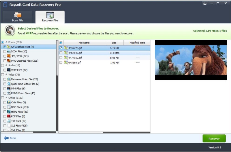 Rcysoft SD记忆卡数据恢复向导可以帮助您在几分钟内从记忆卡中获得所有删除,格式化或丢失的文件。你可以预览数据卡数据恢复前。