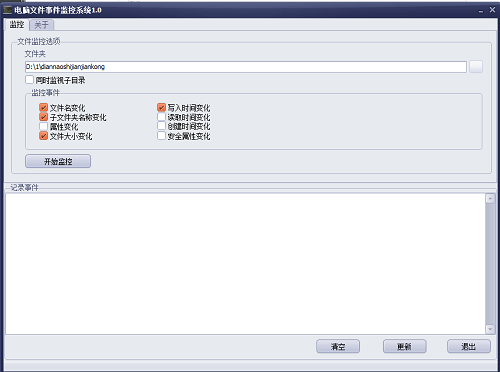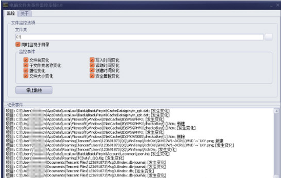 3、点击开始监控即可,一旦有文件发生变化,就会在记录事件中显示更改情况,你可以将这些事件文本复制导出。