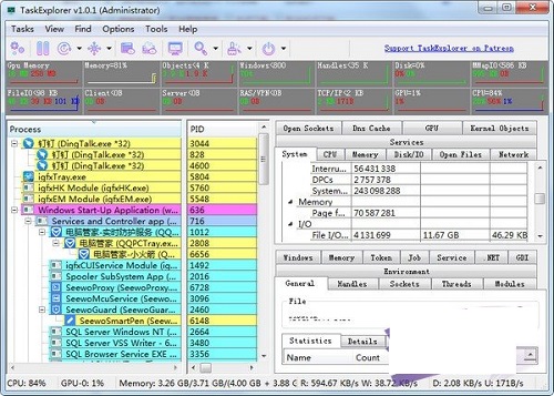 TaskExplorer官方版是一款可以帮助用户在软件界面快速查看自己的电脑后台任务的高级任务管理器,TaskExplorer官方版也可以在软件查看系统信息,查看内存数据,查看CPU数据,查看网络读写性能,让用户对当前电脑的基本运行状态更了解,软件将所有信息显示在主界面,打开软件就可以自动获取当前计算机的各项数据。