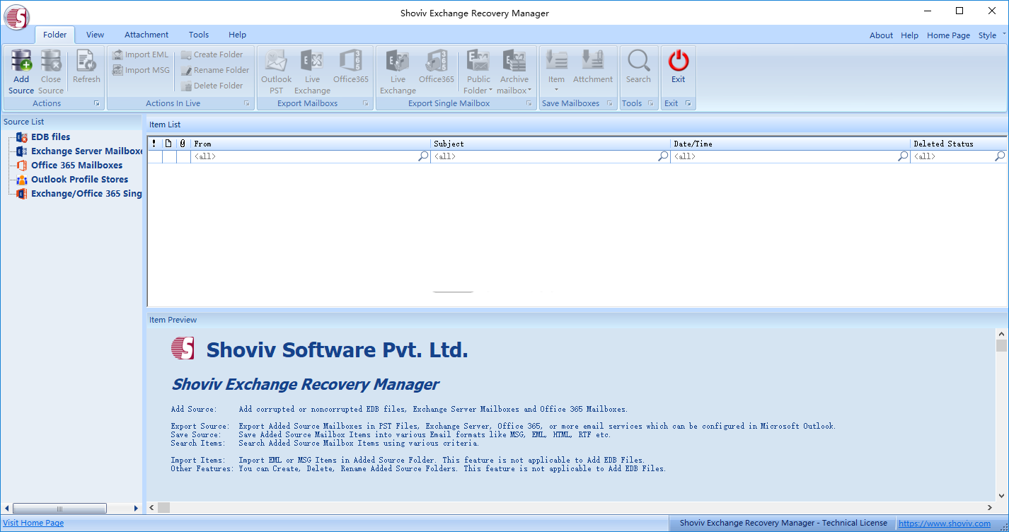 Shoviv Exchange Recovery Manager官方版可添加多个源,例如EDB文件,Live Exchange / Office365邮箱,Outlook配置文件存储(邮箱),Live