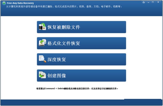 Free Any Date Recovery最新版主界面为用户提供三种数据恢复模式:删除文件恢复,格式化文件恢复和深度恢复。