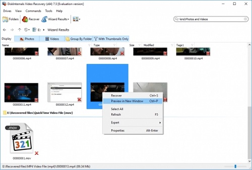可以预览和恢复AVI,WMV,MPEG,MPEG,MPG,ASF,MP1,M1V,M1V,MP2,M2V,M2V,M2A,VOB,DAT,MV,MV,Mov和其他电影。