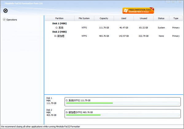 Free官方版也是个简单小巧的磁盘、u盘格式化工具,使用软件能够完美的格式化一些小型的储存设备。