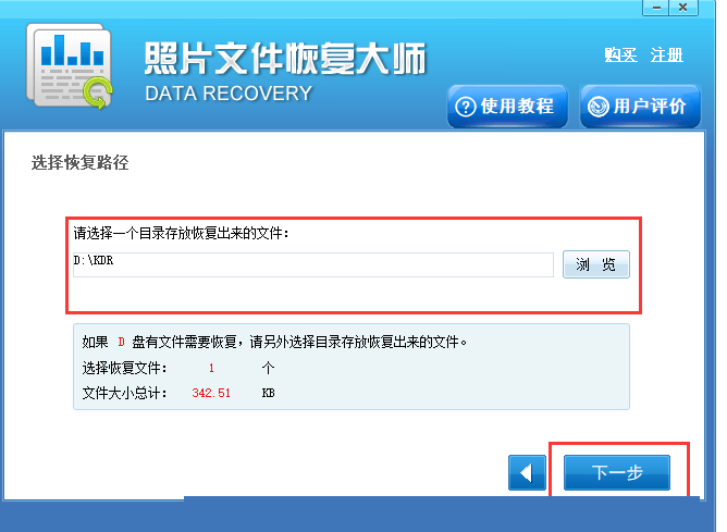 第五步:点击“浏览”按钮自定义选择文件的存储位置,再点击“恢复”按钮对选中文件进行恢复操作,恢复工作完成后点击提示框的确定按钮就能查看到文件了。