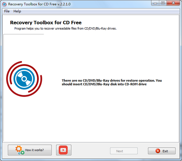 Recovery Toolbox for CD Free中文版是一款十分优秀且功能出众的光盘恢复工具软件,可以帮助用户修复不可读的数据激光唱片/DVD/蓝光和其他光盘。Recovery Toolbox for CD Free中文版界面简洁直观,操作简单实用,用户只需点击几下鼠标就可做到。