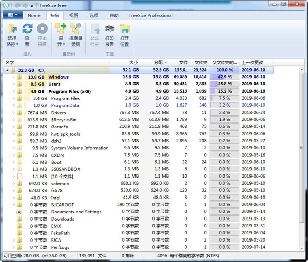 TreeSize免费版现在支持暗模式。(此功能需要Windows 10版本1809或更高版本。)
