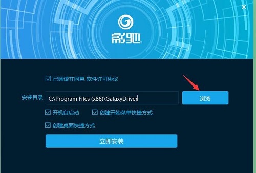 2、选择安装目录,默认的是“C:Program Files (x86)GalaxyDriver”,可以点浏览修改
