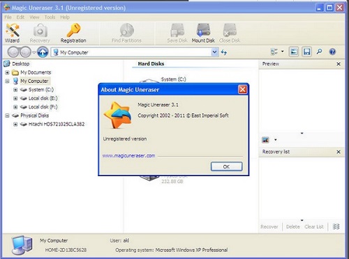 魔术UNERASER支持所有版本的Windows,包括Windows Vista中,Windows 7和Windows