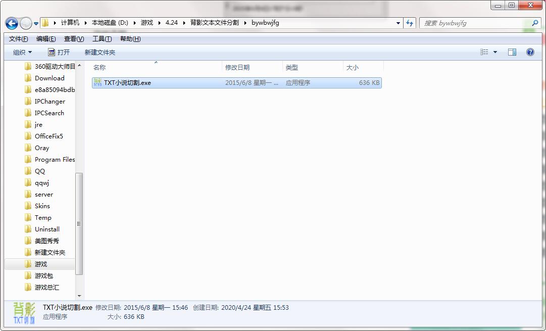 2.解压背影文本文件分割软件压缩包,选中exe程序