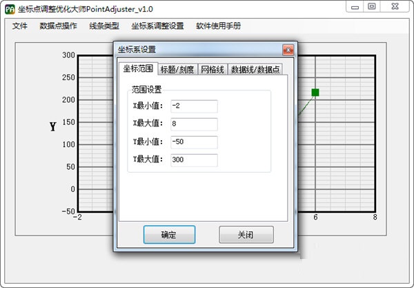 坐标系的XY范围、标题、刻度、背景网格、数据线、数据点等,用户均可自定义设置。