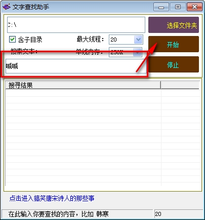 文字查找助手绿色版是一款快捷方便的本地关键字搜索查找工具。文字查找助手绿色版通过具体文字可以快速的寻找到自己想要找到的文件,查找快速,一键抵达目标文件夹。只需要输入关键字,几秒钟内就可以自动查找出该文档的位置。