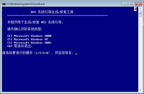 一、下载打开NT5引导生成修复工具官方版软件,输入你的系统数字按回车确认