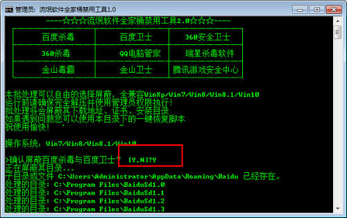 流氓软件全家桶禁用工具最新版可一键完成批处理,使用的时候记得以管理员身份运行,并先把杀软暂时退出,避免被拦截,造成操作失败。