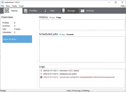 IceArchiver官方版带有干净直观的界面,易于浏览和管理。“主页”选项卡被设计为摘要窗口,该窗口显示过去30天执行的任务以及备份历史记录和日志的概述。您可以通过单击“运行”按钮从“配置文件”选项卡创建备份。