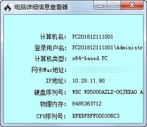 电脑详细信息查看器官方版是一款非常方便的电脑信息查看工具,电脑详细信息查看器官方版主要是查看电脑信息,CPU、硬盘之类的信息,方便大家检测时电脑使用!能够查询硬件信息包括:计算机名、登录用户名、计算机类型、网卡Mac地址、IP地址、硬盘序列号、物理内存、CPU序列号,无需手动,自动扫描。
