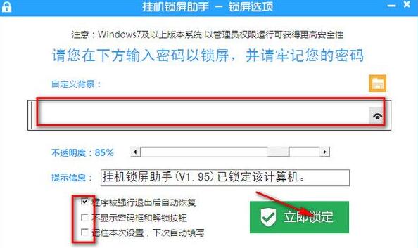 2.输入锁屏密码(最好能牢记),点击立即锁定即可成功使用.