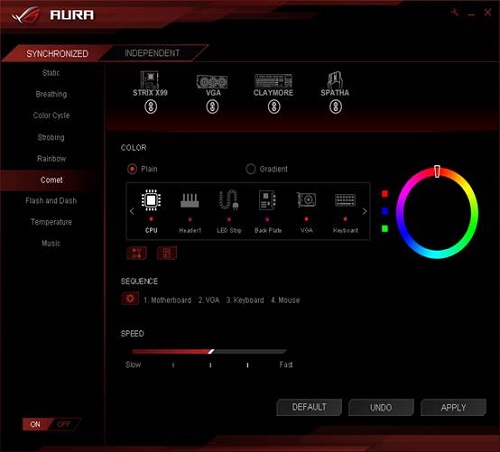 总共9种不同的自定义效果,充分利用最新主板上更复杂的灯光控制模式。