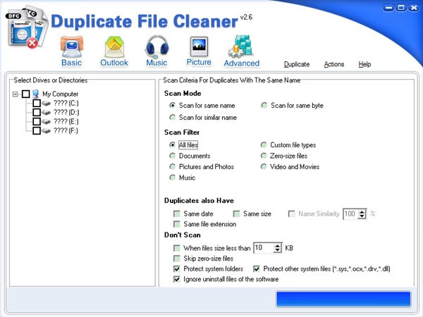 Duplicate File Cleaner正式版是一款体积小巧、简单便捷、功能非常实用专业化重复文件清理工具,Duplicate File Cleaner正式版可以帮助人们扫描和清理了重复的照片,音乐,视频和大量的Outlook电子邮件。